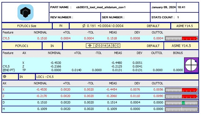 Traditional PC-DMIS pdf report.