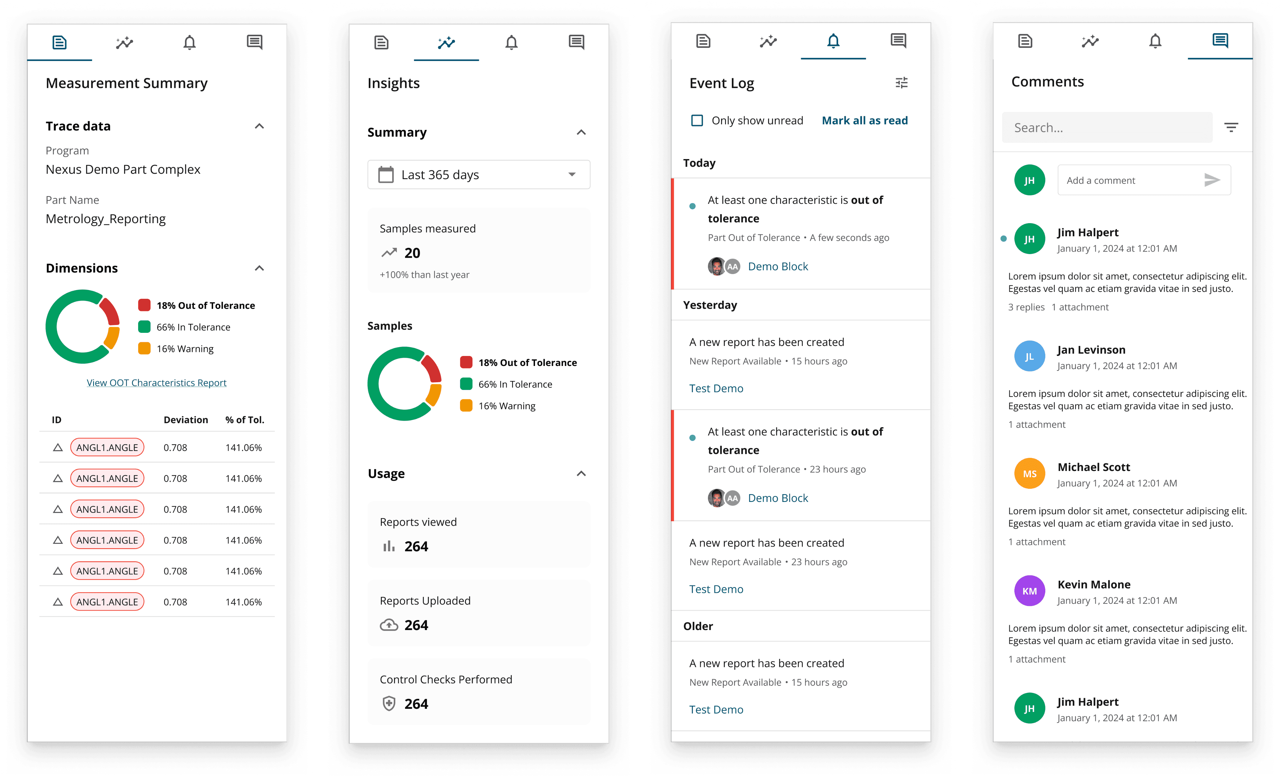 Reports are connected directly to live inspection data, and we introduced features like a contextual panel for traceability data, built-in analysis tools such as control charts, and even event logs with commenting, making collaboration part of the workflow rather than an afterthought.