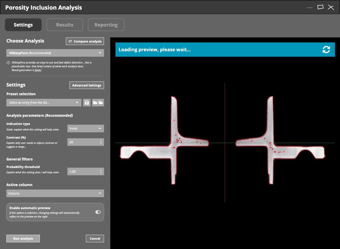 The new interface shows only the most important settings upfront, with advanced options organized into tabs. We introduced smart defaults that handle common analysis types and built contextual tooltips and visual feedback to help guide users through the workflow.